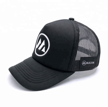 Puff 3D ricamo etichetta tessuta 5 pannello di schiuma e mesh trucker cap