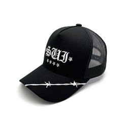 Cappello da camionista personalizzabile con 5 pannelli neri ricamati a tesa larga